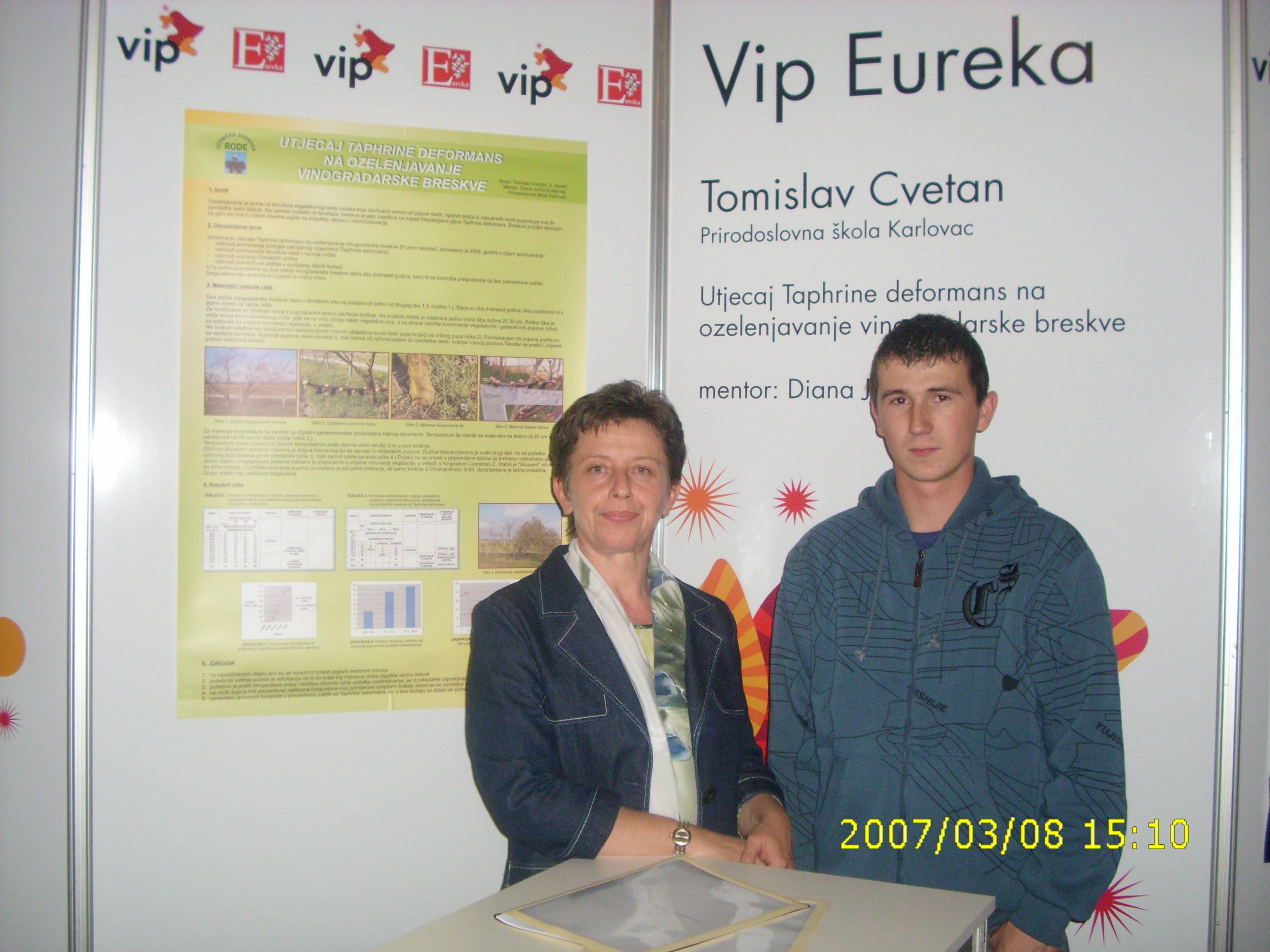 Istraživački rad:" Utjecaj Taphrine deformans na ozelenjivanje vinogradarske breskve"Tomislava Cvetana primljen je među petnaest finalista na Smotru učeničkog stvaralaštva VIP EUREKE.